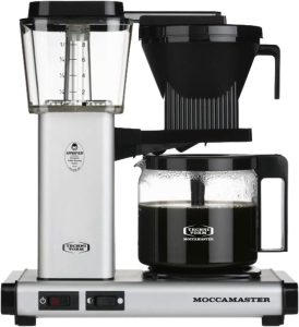 The Technivorm Moccamaster KBG 741 is arguably the best European automatic pour over coffee maker. It is the top-of-the-range premium-end coffee maker meaning it does not get better than this. With its perfect brewing consistency that brews up to 10 cups, it’s perfect for office or home use. The most unique thing about the KBG 741 is its design. I have never seen another pour over coffee maker that looks like this.