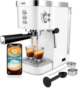 What makes this machine stand out is its high pressure pump system which is actually better than the Calphalon. It’s high pressure pump system will brew hotter and better quality espresso shots. If you are on a budget then Gevi 20 Bar is a great high quality espresso machine to consider.
